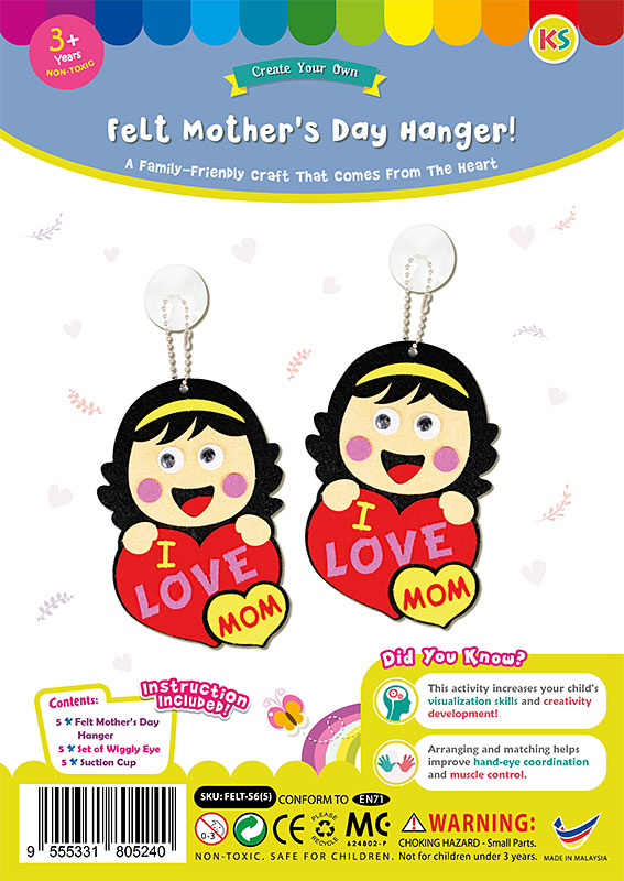 An easy, arrange and stick felt craft for all wonderful moms on Mother's Day! A felt decorative hanger with suction to hang your creation on window or smooth surfaces.
