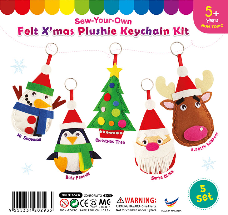 5 x Set of assorted X’mas felt plushie kit. Each set includes: