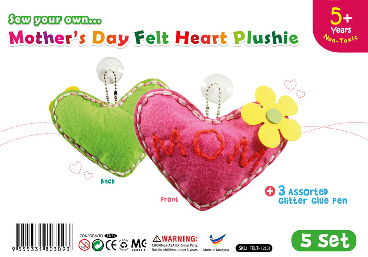 Mother's Day Felt Heart Shape With Suction Kit 5 Pack