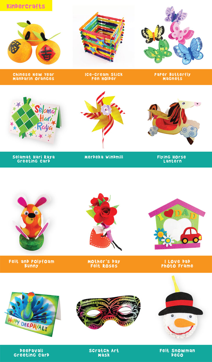 13 craft kits prepped in advance for pre-schoolers all year-round. Perfect for kindergarteners and art classes.