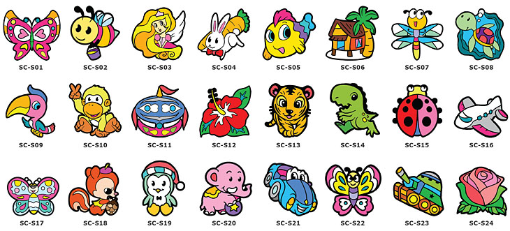butterfly, bee, princess, tiger, dinosaur, elephant, rabbit, bunny, fish, kampung house, aeroplane, plane, bear, whale, dragonfly, turtle, bird, hornbill,penguin, christmas, ladybird, hibiscus flower, orang utan, wau, tank, rose, car
