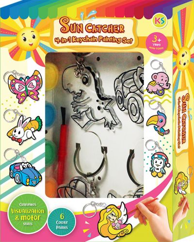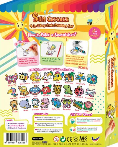 Our new 4-in-1 Suncatcher keychain paintings comes in beautiful box Suncatcher kit which contains 4-in-1 Suncatcher keychain and complete set colouring tools. Kids only have to mix and fill in colours that they like, creating beautiful masterpieces. Perfect as a birthday gift or present!